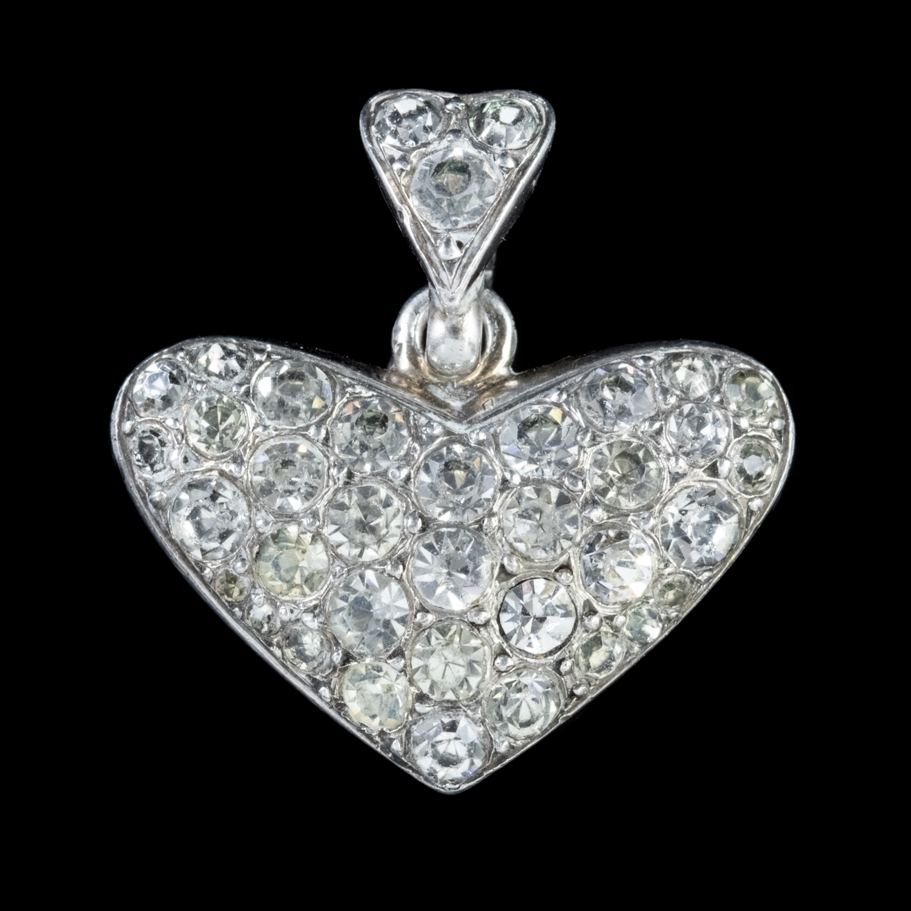Antique Edwardian Paste Heart Pendant Sterling Silver c.1905