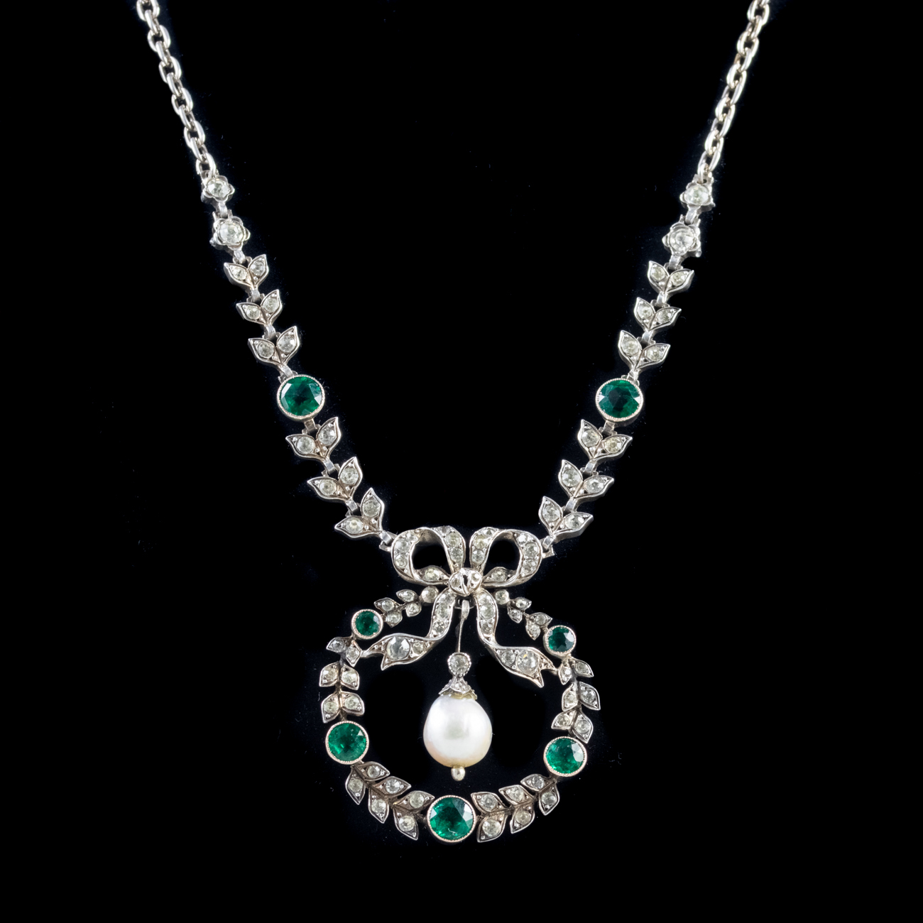 Antique Edwardian Paste Lavaliere Bow Necklace Silver c.1908