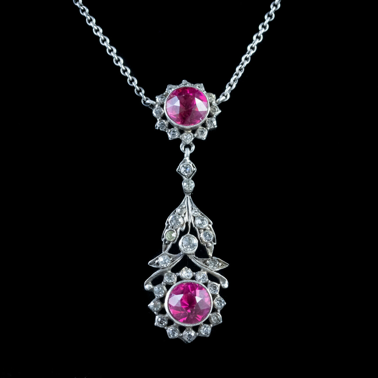 Antique Edwardian Paste Pendant Necklace Silver c.1910