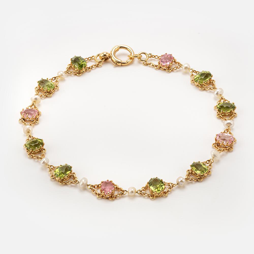 Antique Edwardian Pink Tourmaline Pearl and Peridot Bracelet Circa 1900’s (1 of 8)