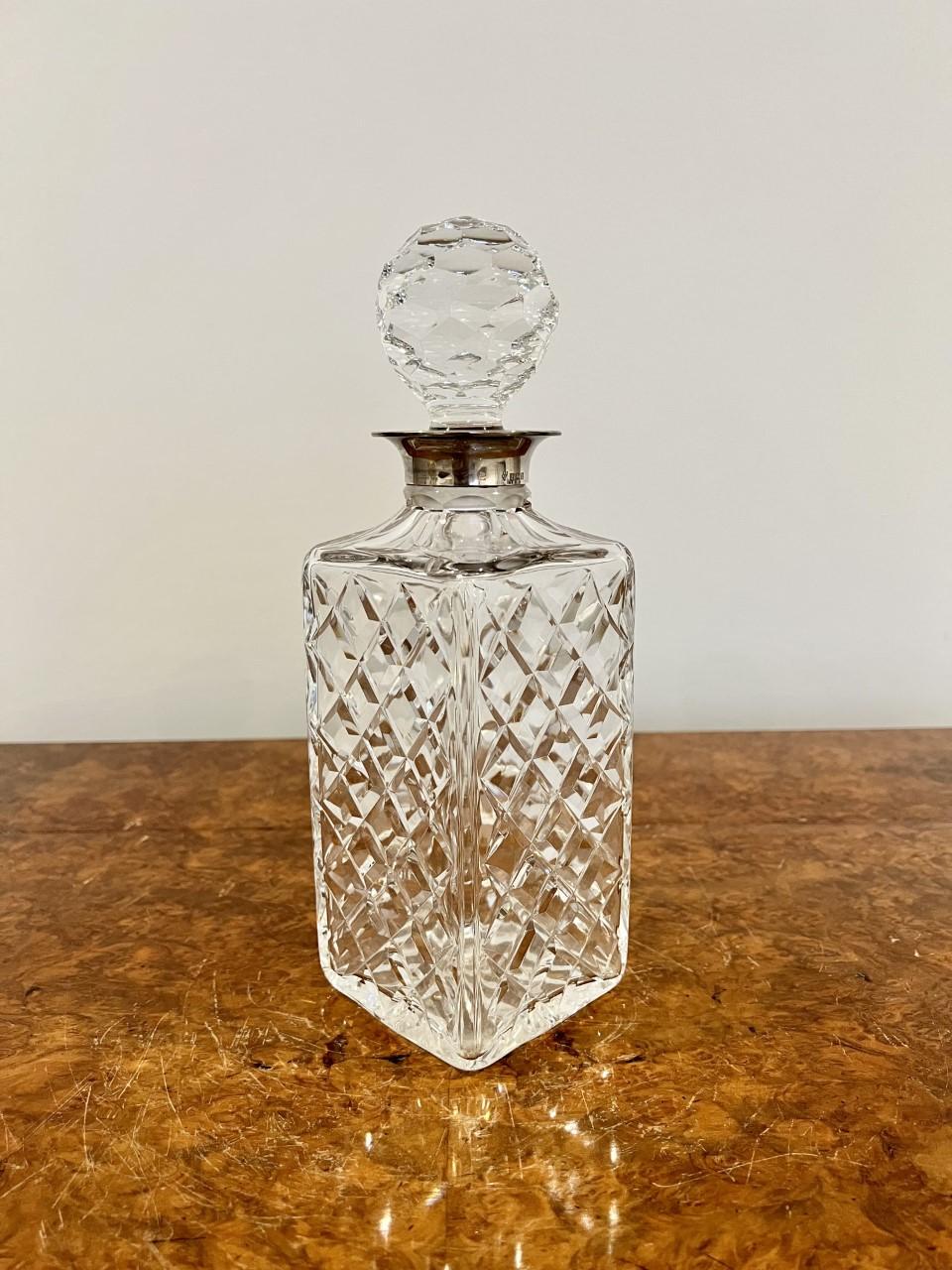 Antique Edwardian Quality Cut Glass Hallmarked Silver Collar Decanter