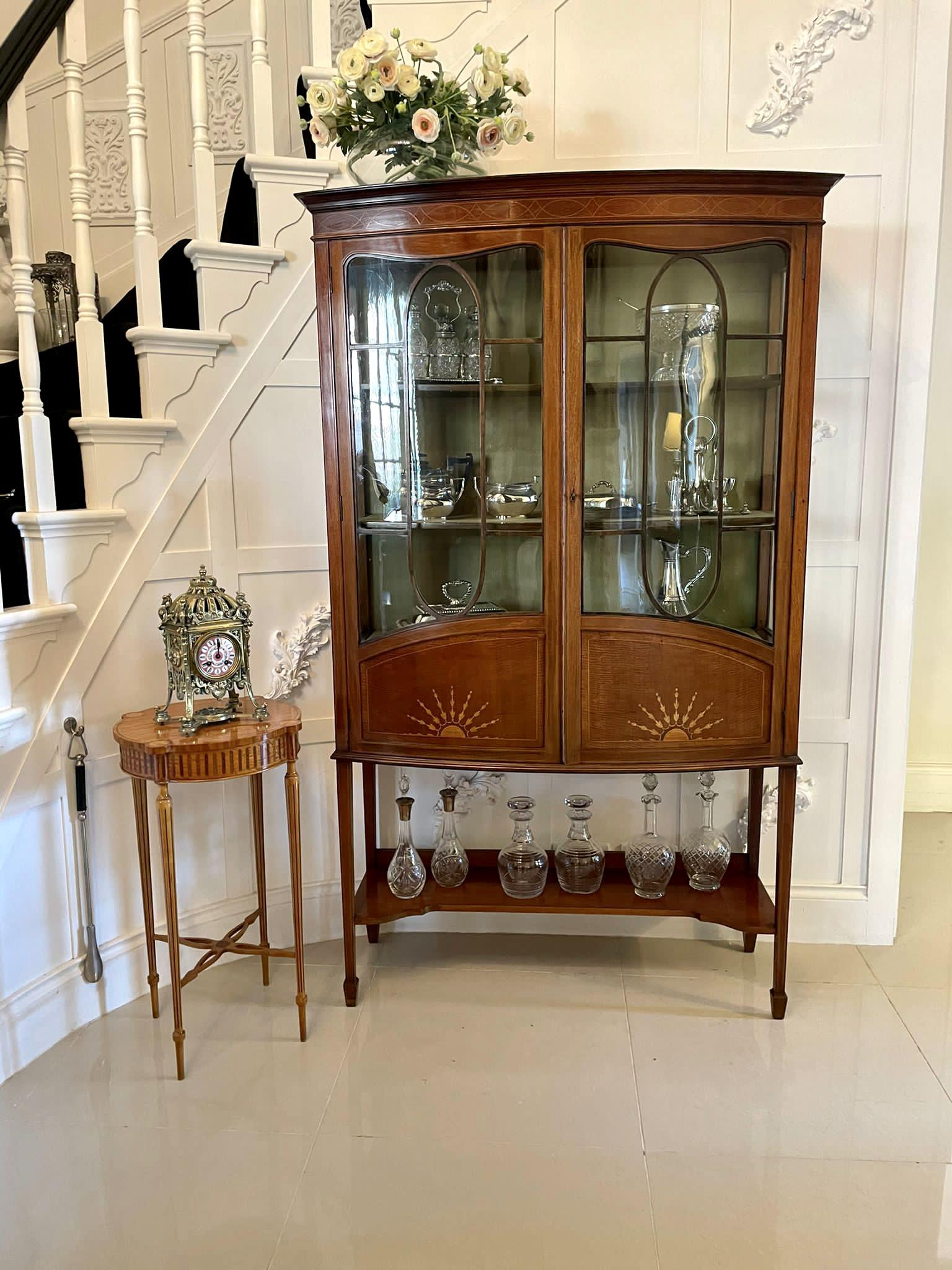 Antique Edwardian Quality Inlaid Mahogany Bow Fronted Display Cabinet