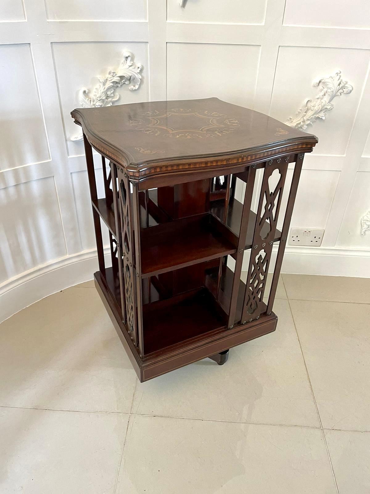 Antique Edwardian Quality Marquetry Inlaid Mahogany Free Standing Revolving Bookcase