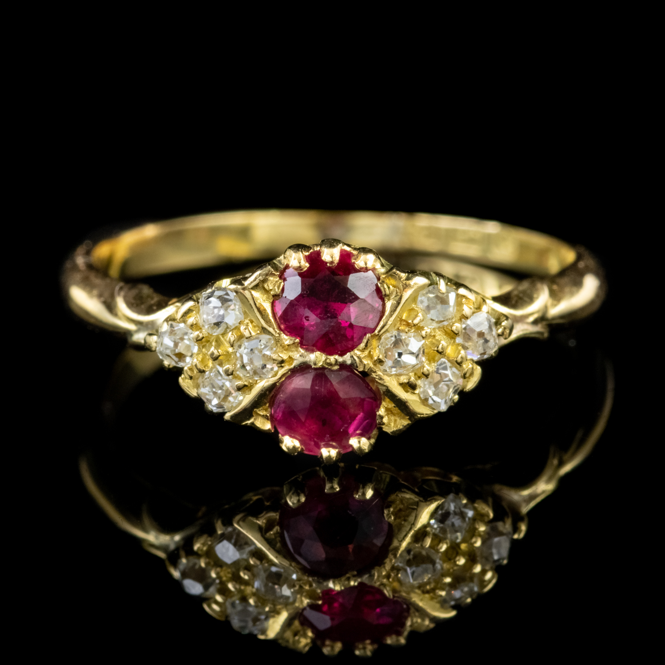 Antique Edwardian Ruby Diamond Cluster Ring 18ct Gold Dated 1902