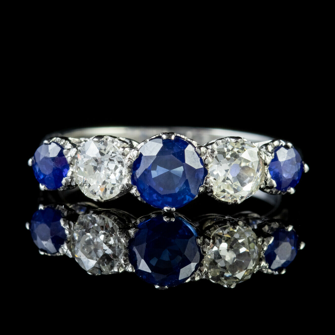Antique Edwardian Sapphire Diamond Five Stone Ring Platinum c.1910
