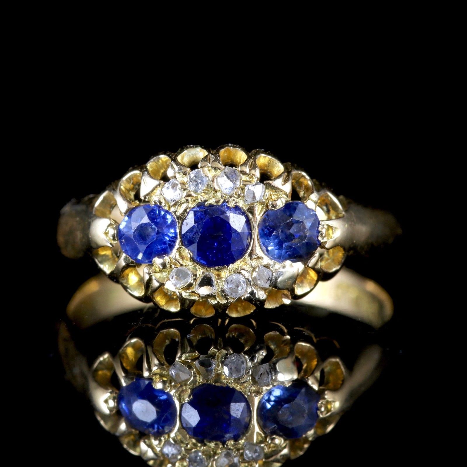 Antique Edwardian Sapphire Diamond Ring 18ct Dated Chester 1903