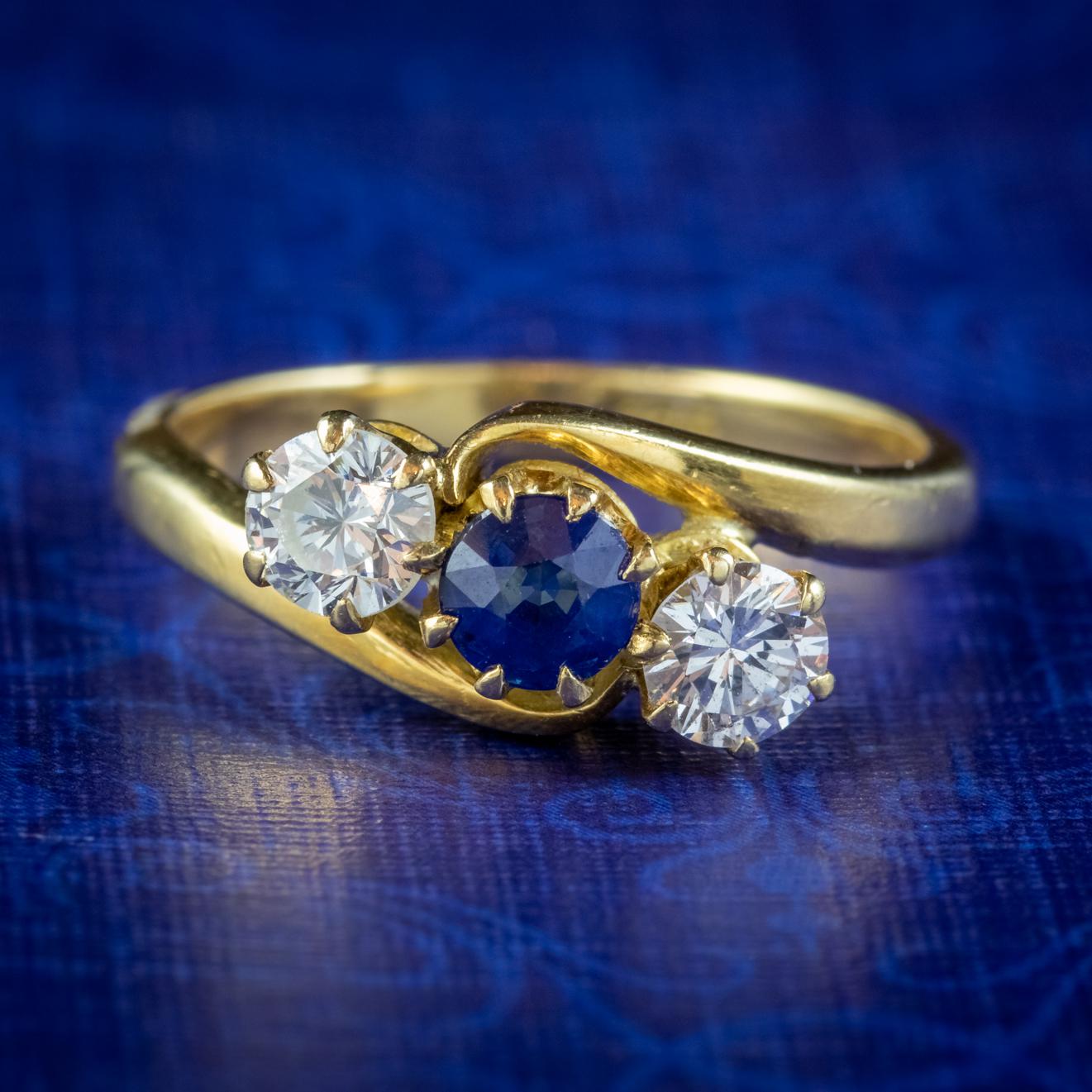 Antique Edwardian Sapphire Diamond Trilogy Twist Ring 18ct Gold Circa 1905