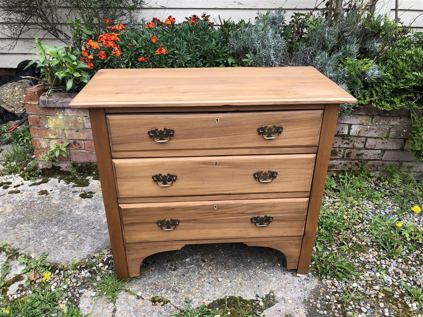 Antique Edwardian Satin Walnut Three Drawer Chest of Drawers