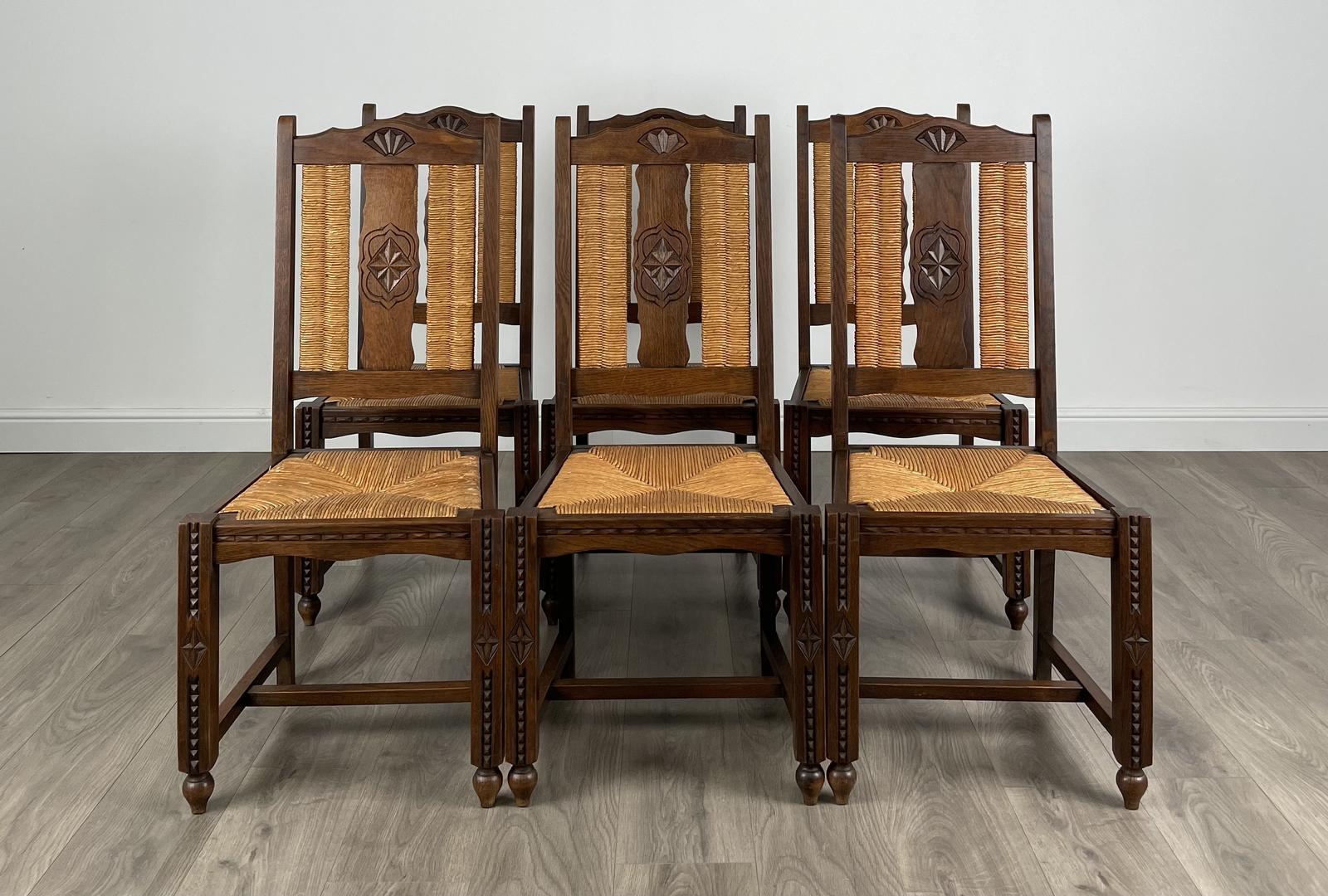 Antique Edwardian Set of 6 Dining Chairs in Oak