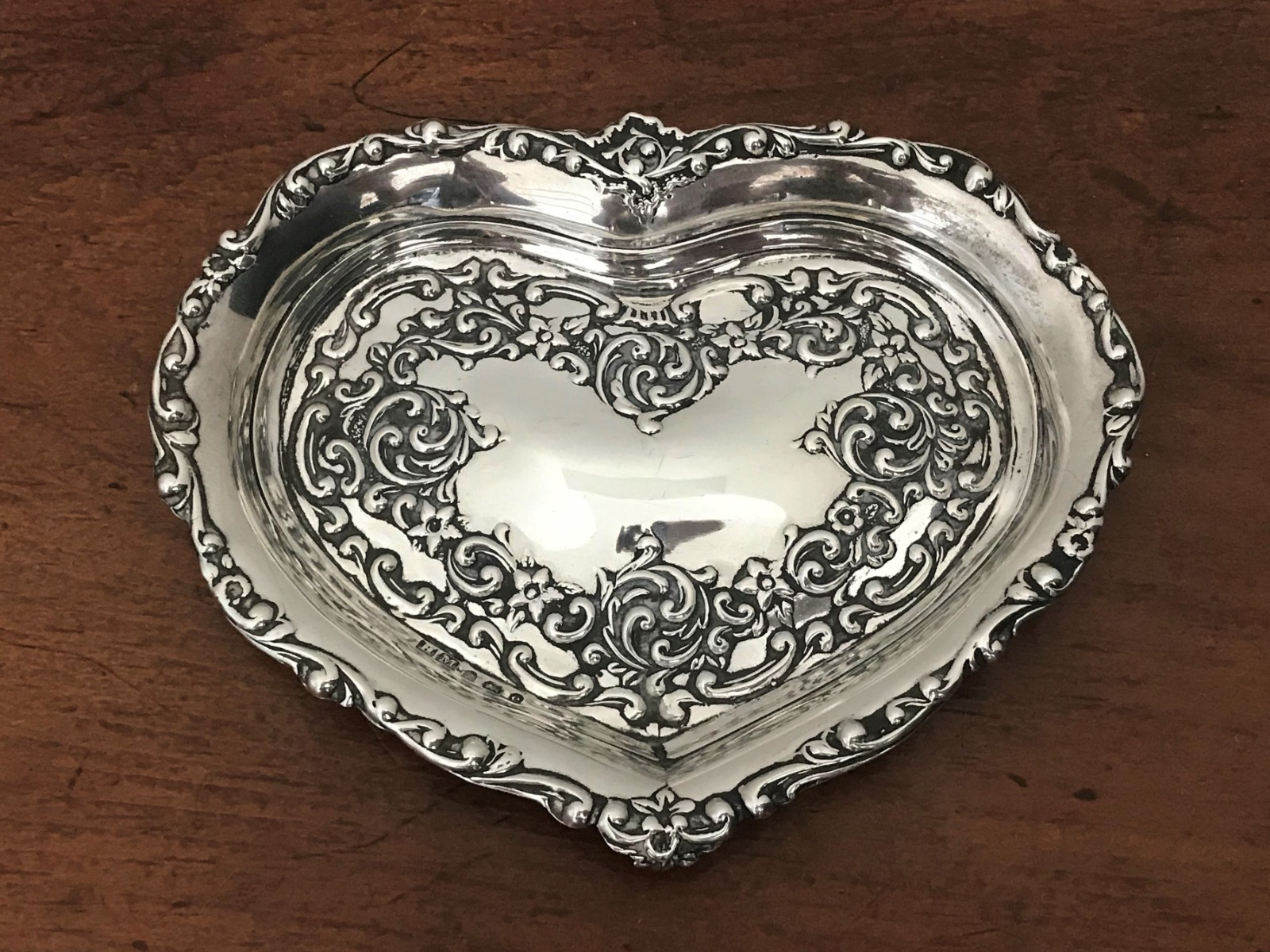Antique Edwardian Silver Heart Shaped Dish or Love Token - Henry Matthews - 1904