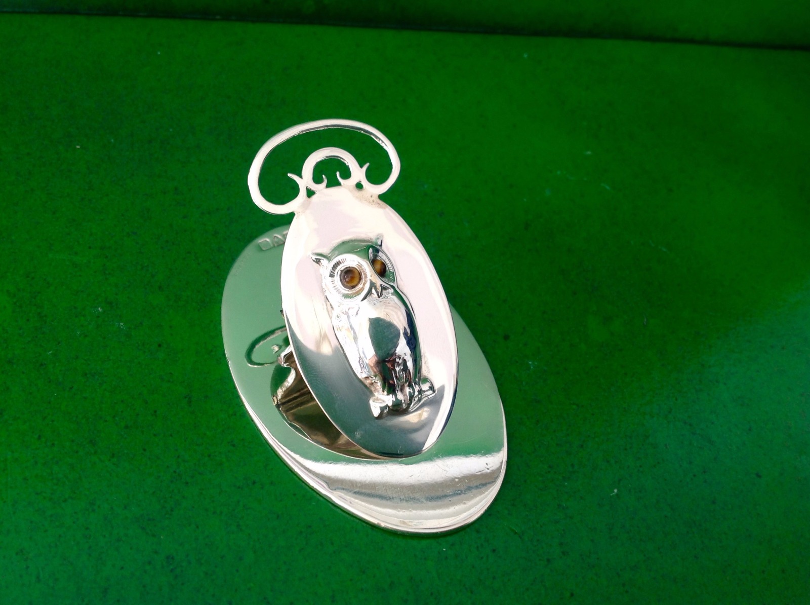 Antique Edwardian Silver Owl Desk Clip - Mordan