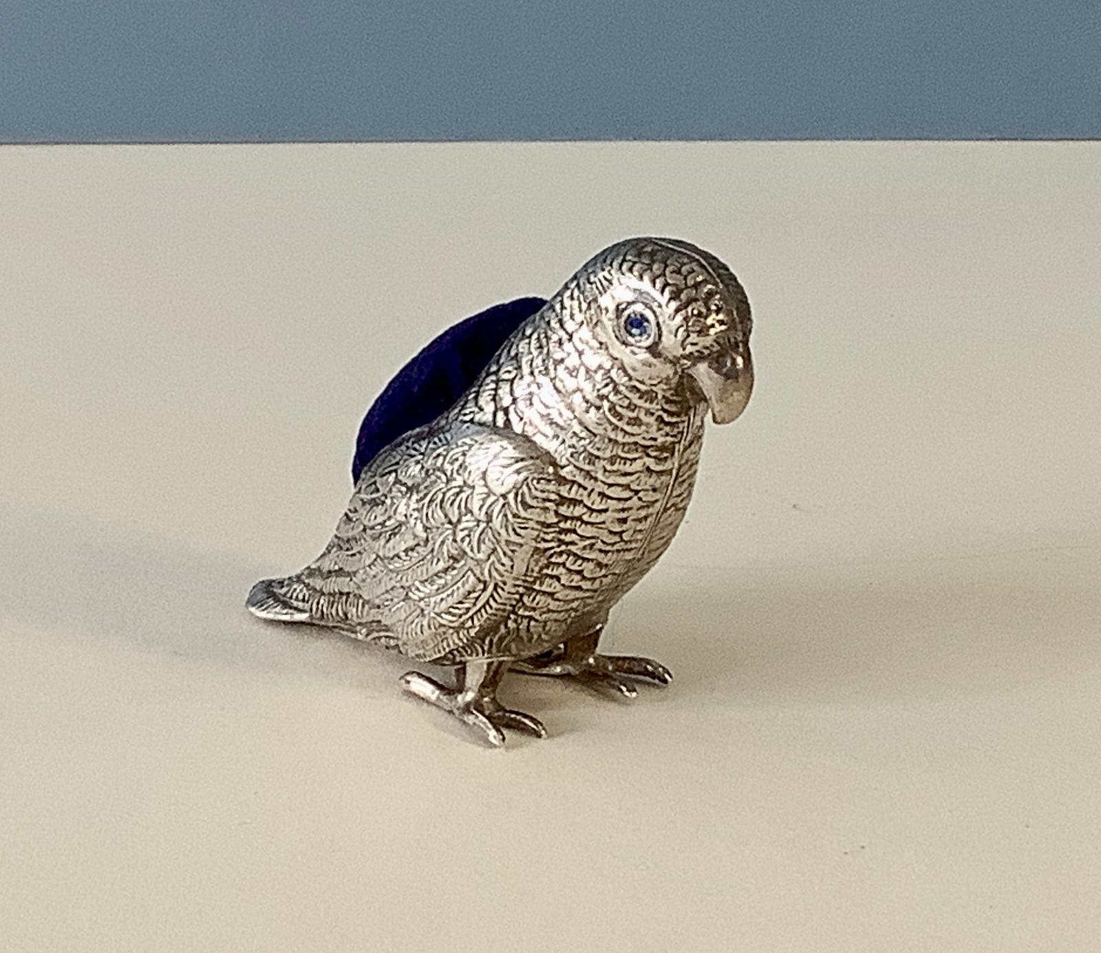 Antique Edwardian Silver Pin Cushion - Parrot