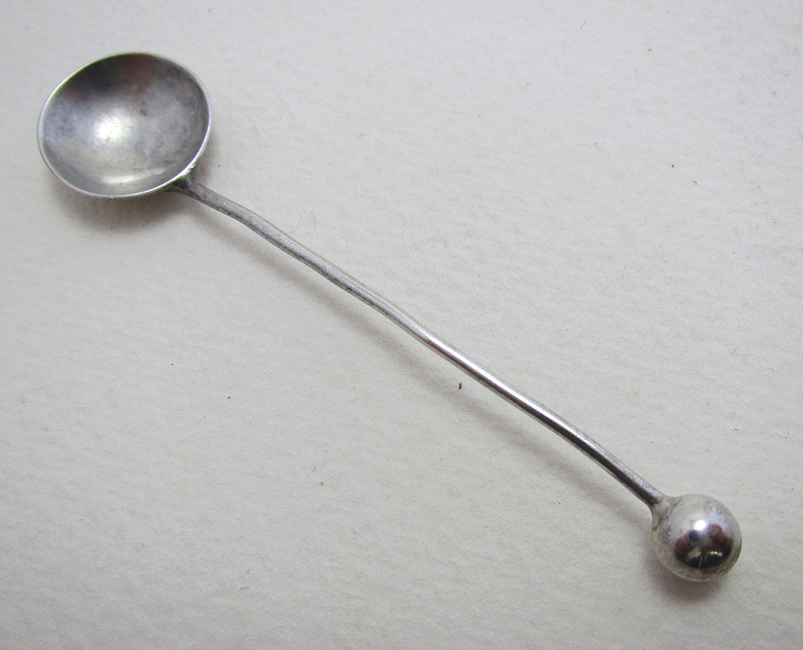Antique Edwardian Solid Sterling Silver English Hallmarked Small Salt / Mustard Pot / Condiment Spoon. Modernist, Ball Finial 1903