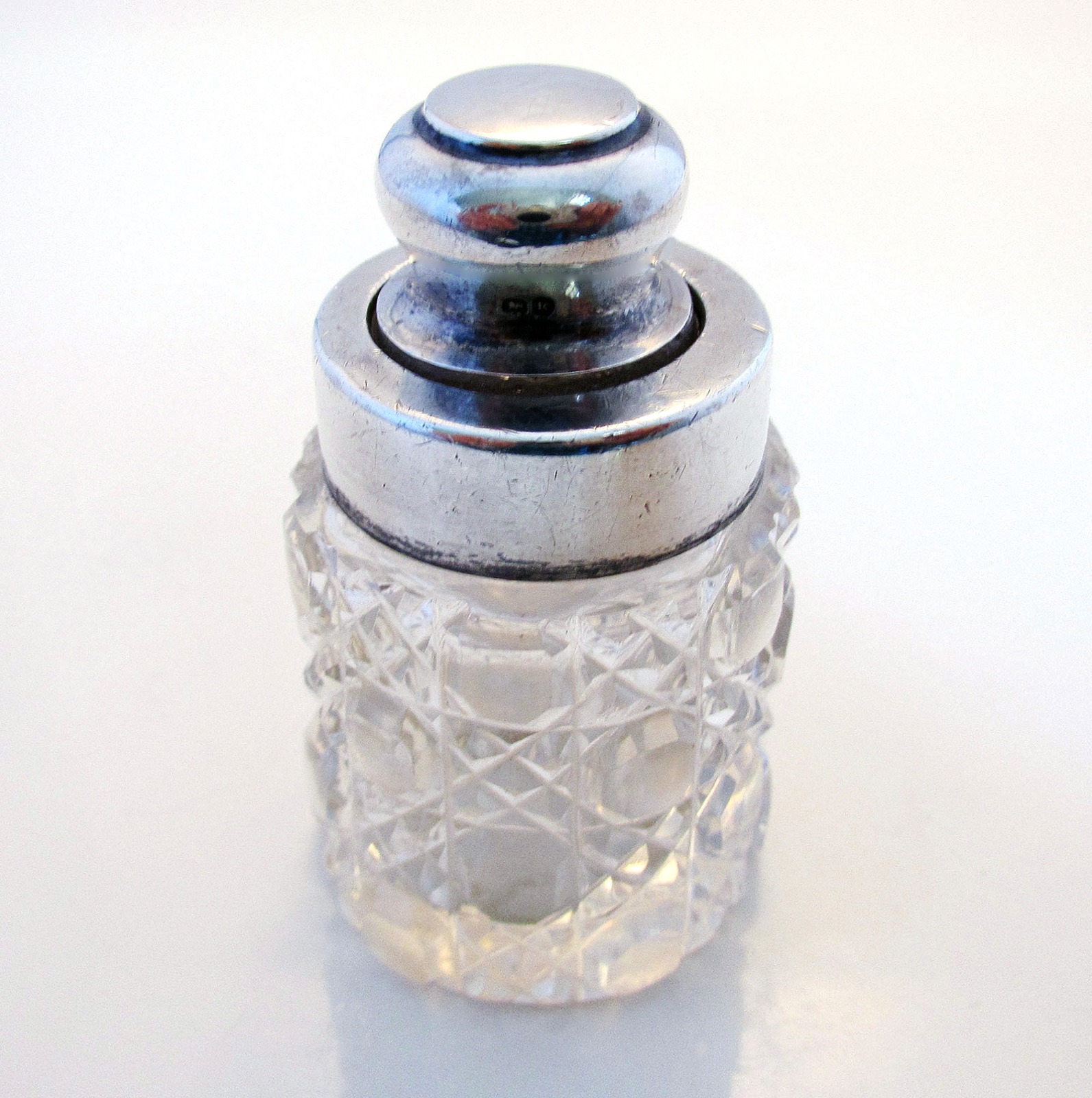 Antique Edwardian Solid Sterling Silver Lid & Cut Glass Smelling Salts Toiletries Scent Perfume Bottle / Jar / Pot / Box / Container 1909