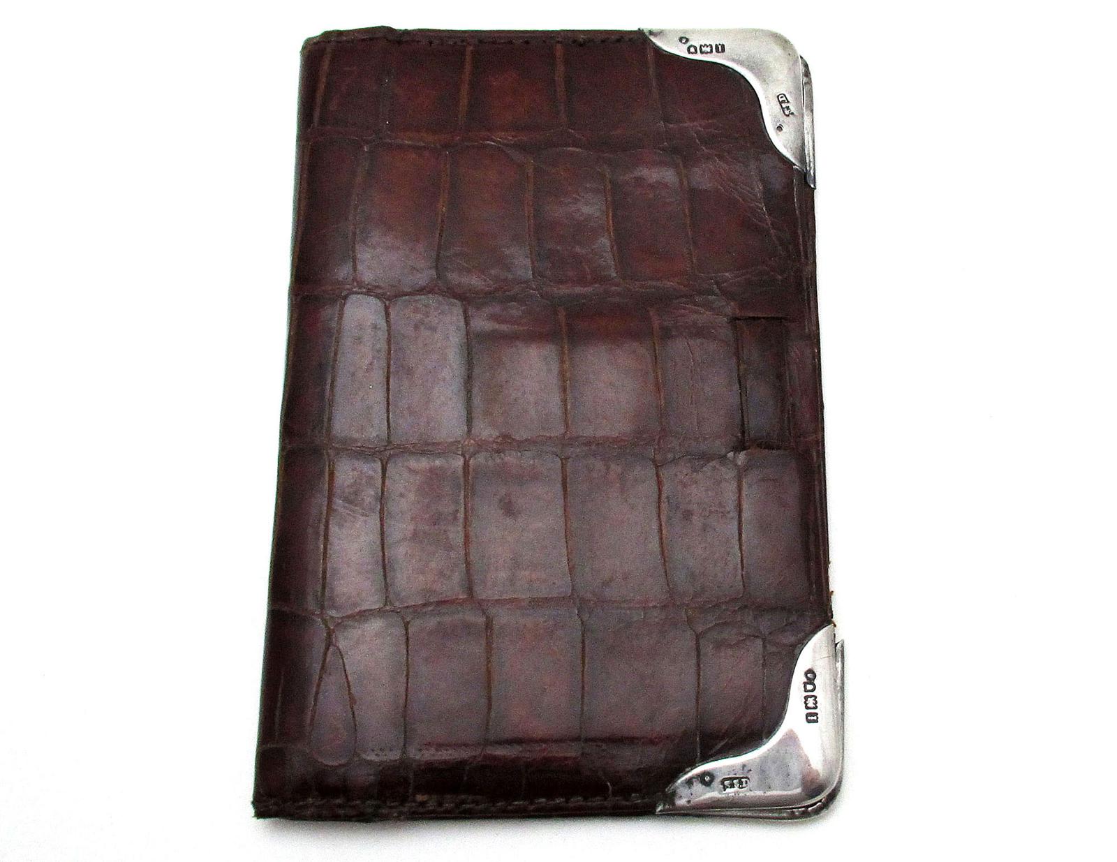Antique Edwardian Solid Sterling Silver Mounted Crocodile Skin Leather Wallet Purse Card Stamp Case, JC Vickery 1904