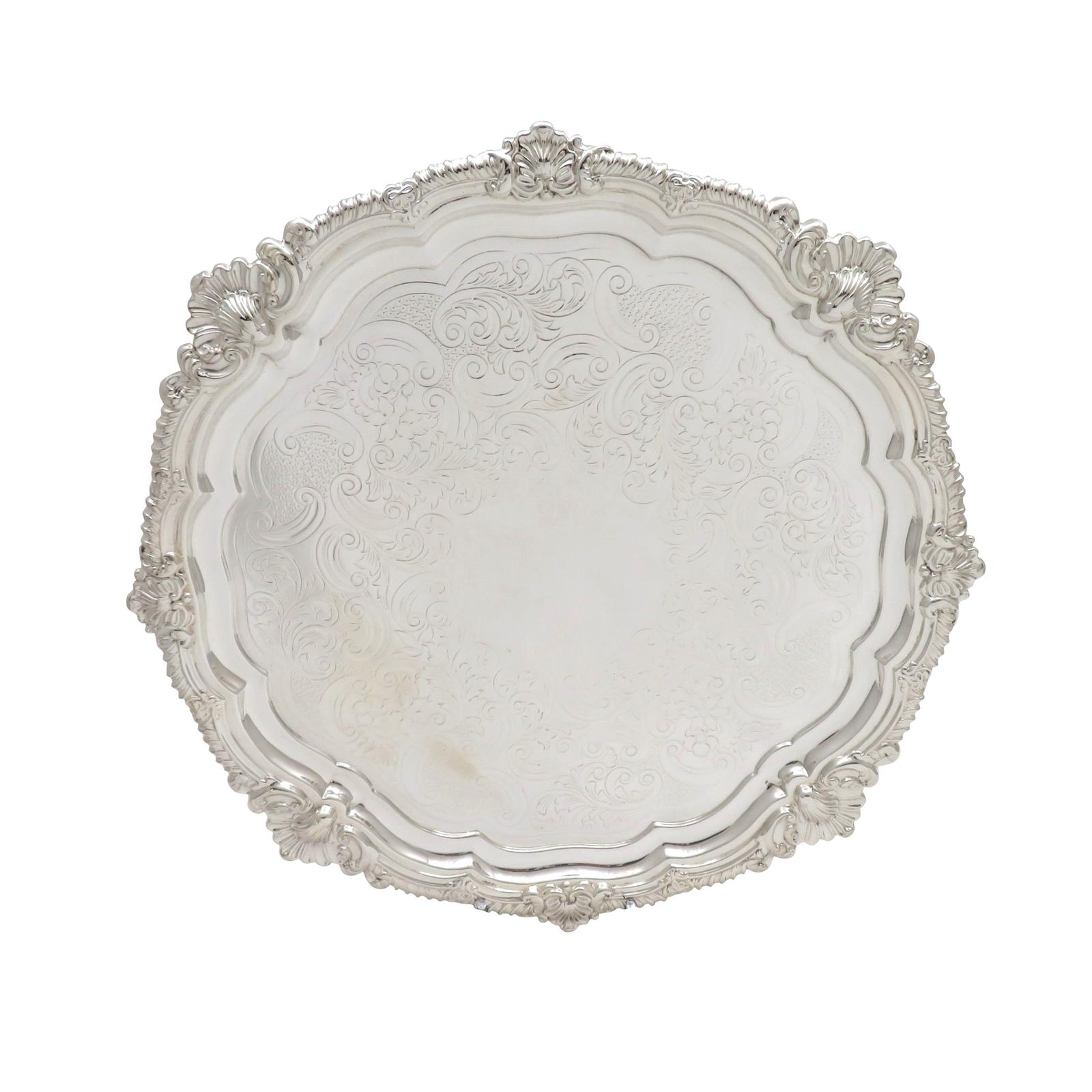 Antique Edwardian Sterling Silver 11" Tray / Salver 1902