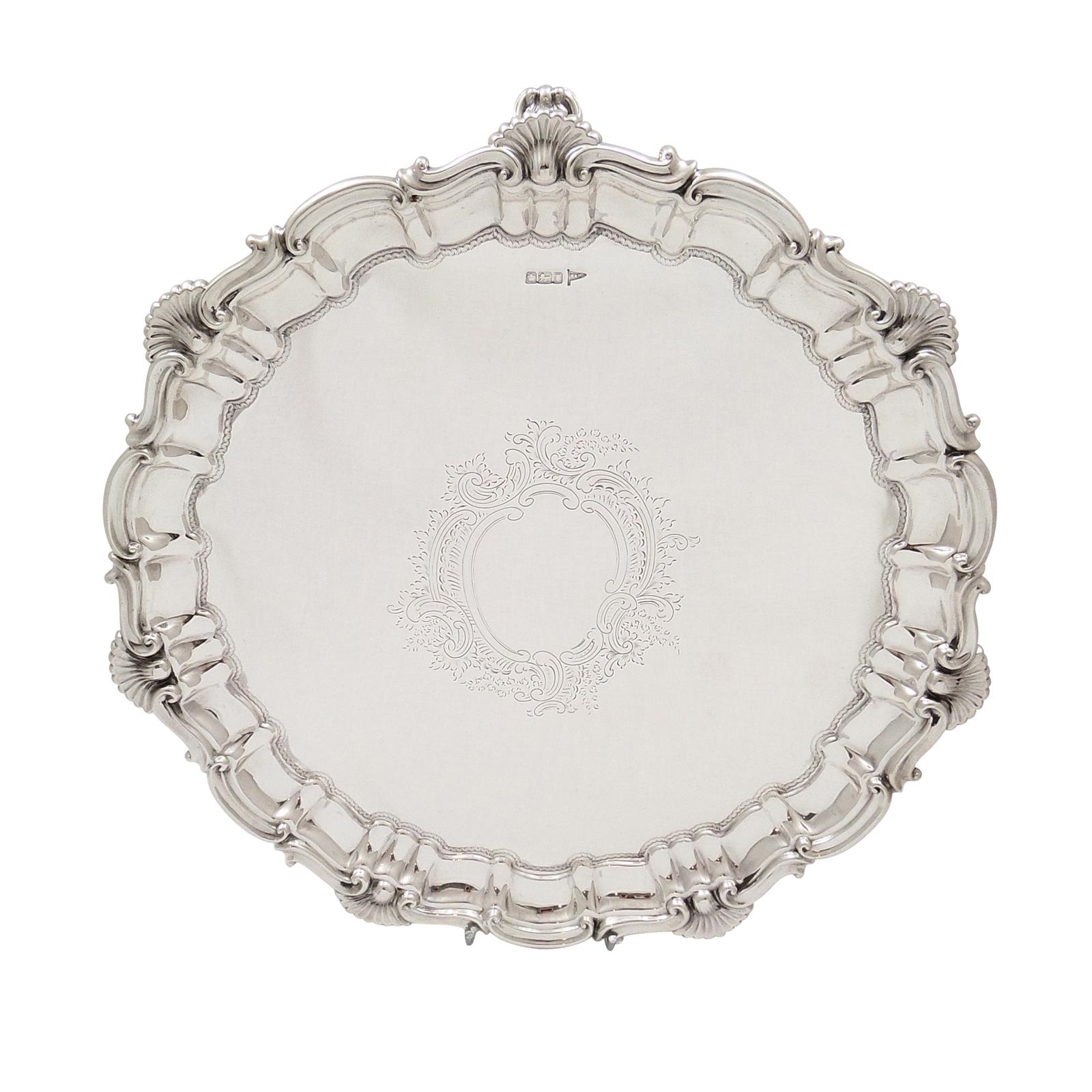 Antique Edwardian Sterling Silver 12" Tray / Salver 1909