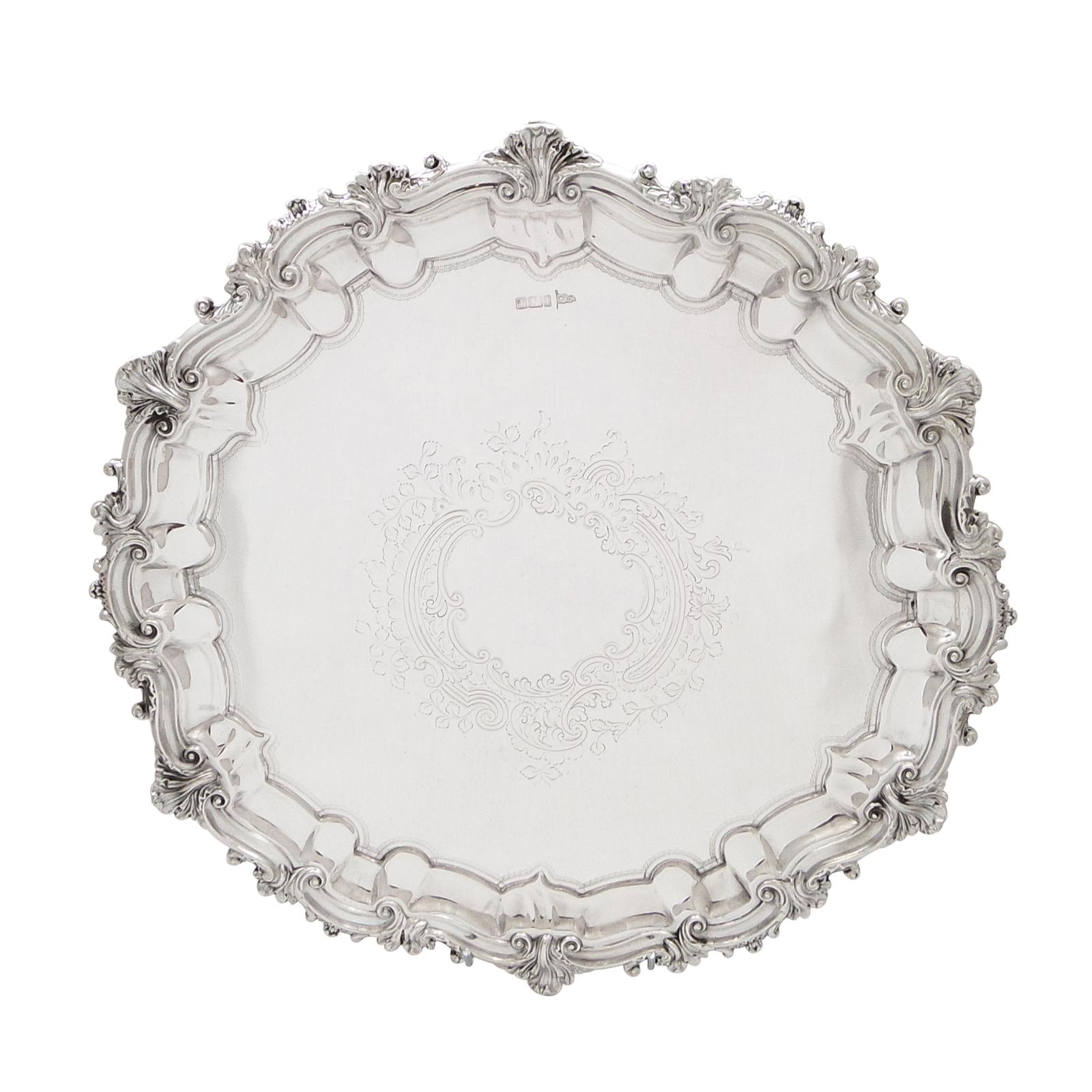 Antique Edwardian Sterling Silver 14" Tray / Salver 1903