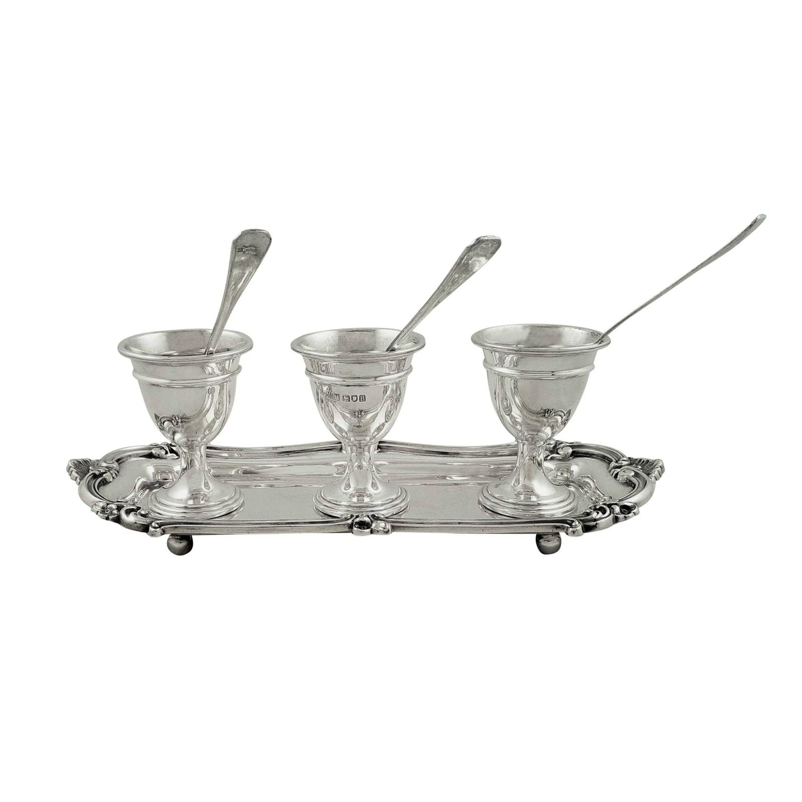 Antique Edwardian Sterling Silver 3 Egg Cruet Set - 1908 Mappin & Webb