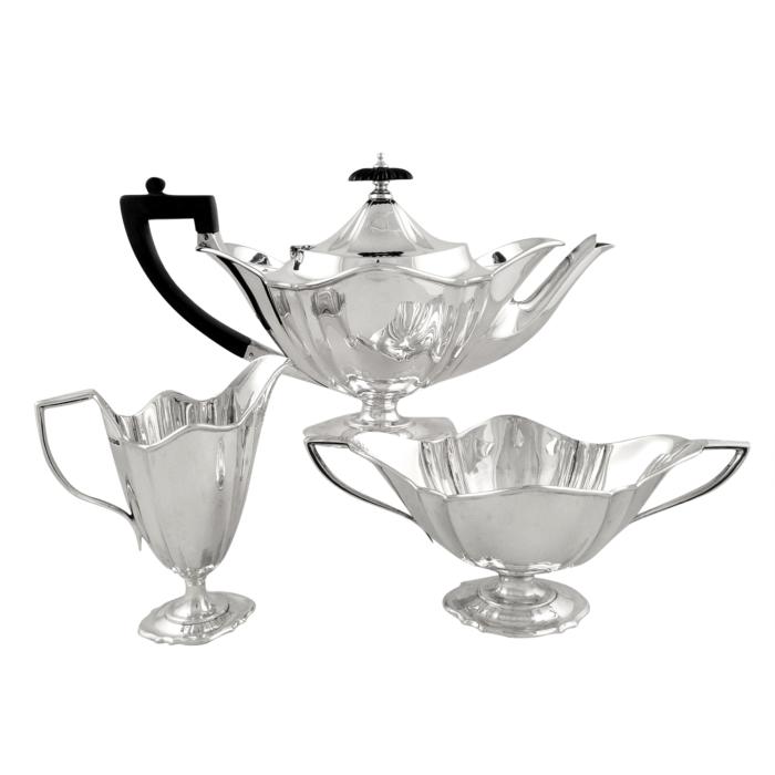 Antique Edwardian Sterling Silver 3 Piece Bachelor Teaset 1905