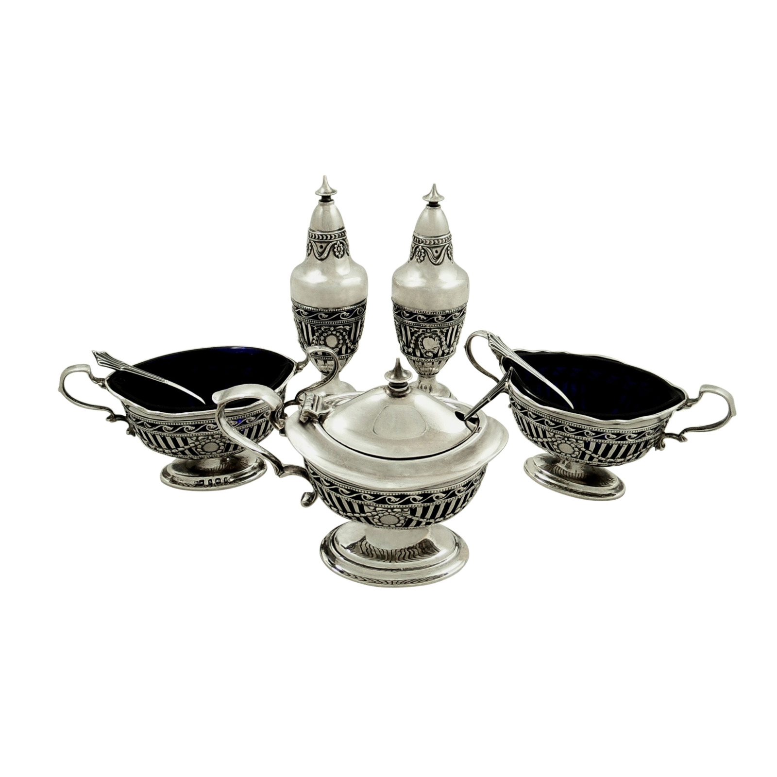 Antique Edwardian Sterling Silver 5 Piece Cruet Set 1908