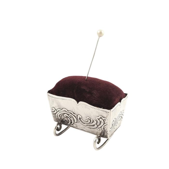 Antique Edwardian Sterling Silver Baby Cot / Crib Pin Cushion 1903