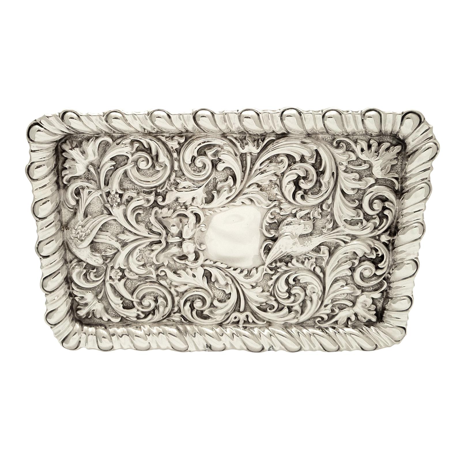 Antique Edwardian Sterling Silver 'Birds' Dressing Tray 1906