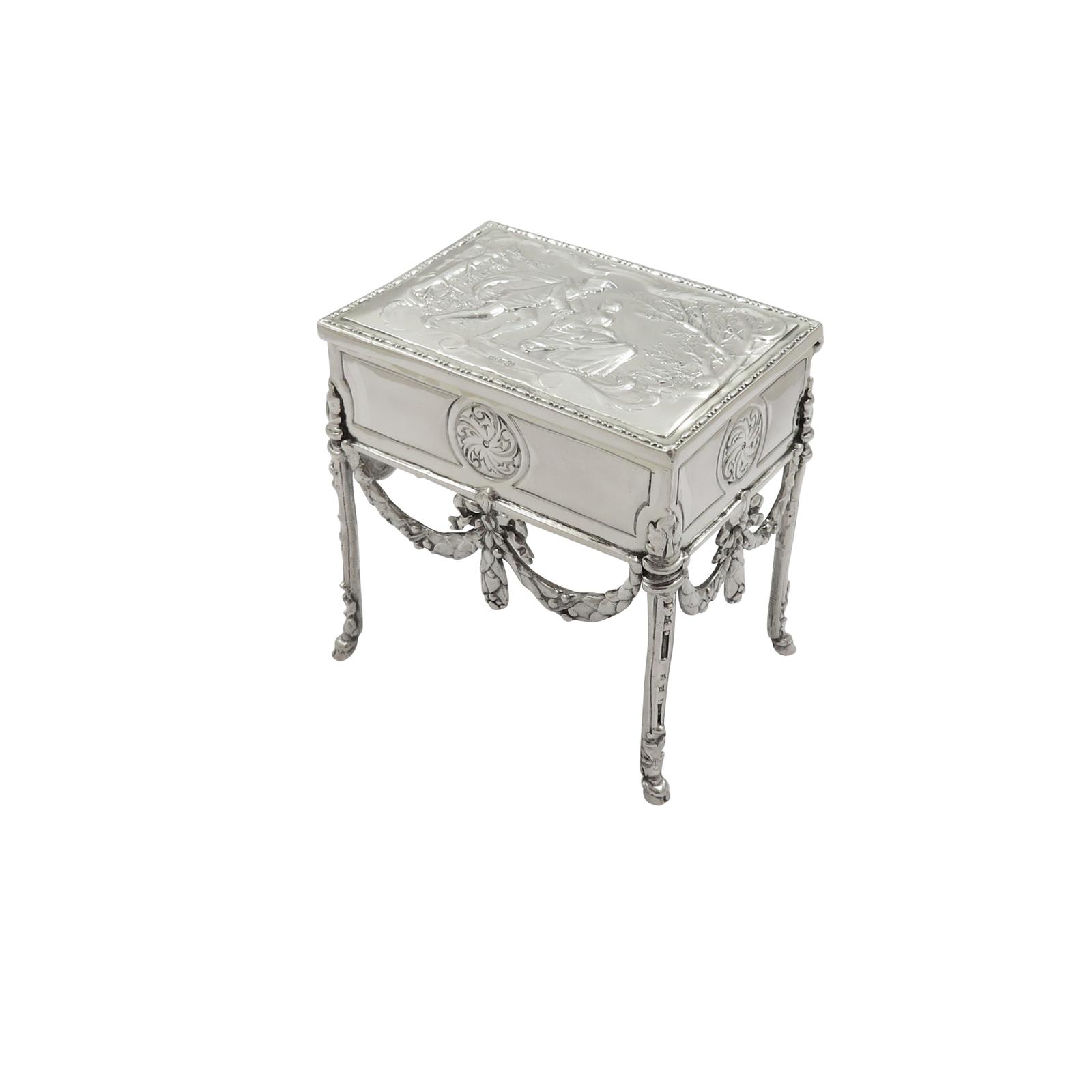 Antique Edwardian Sterling Silver Box on Legs with Scene 1903