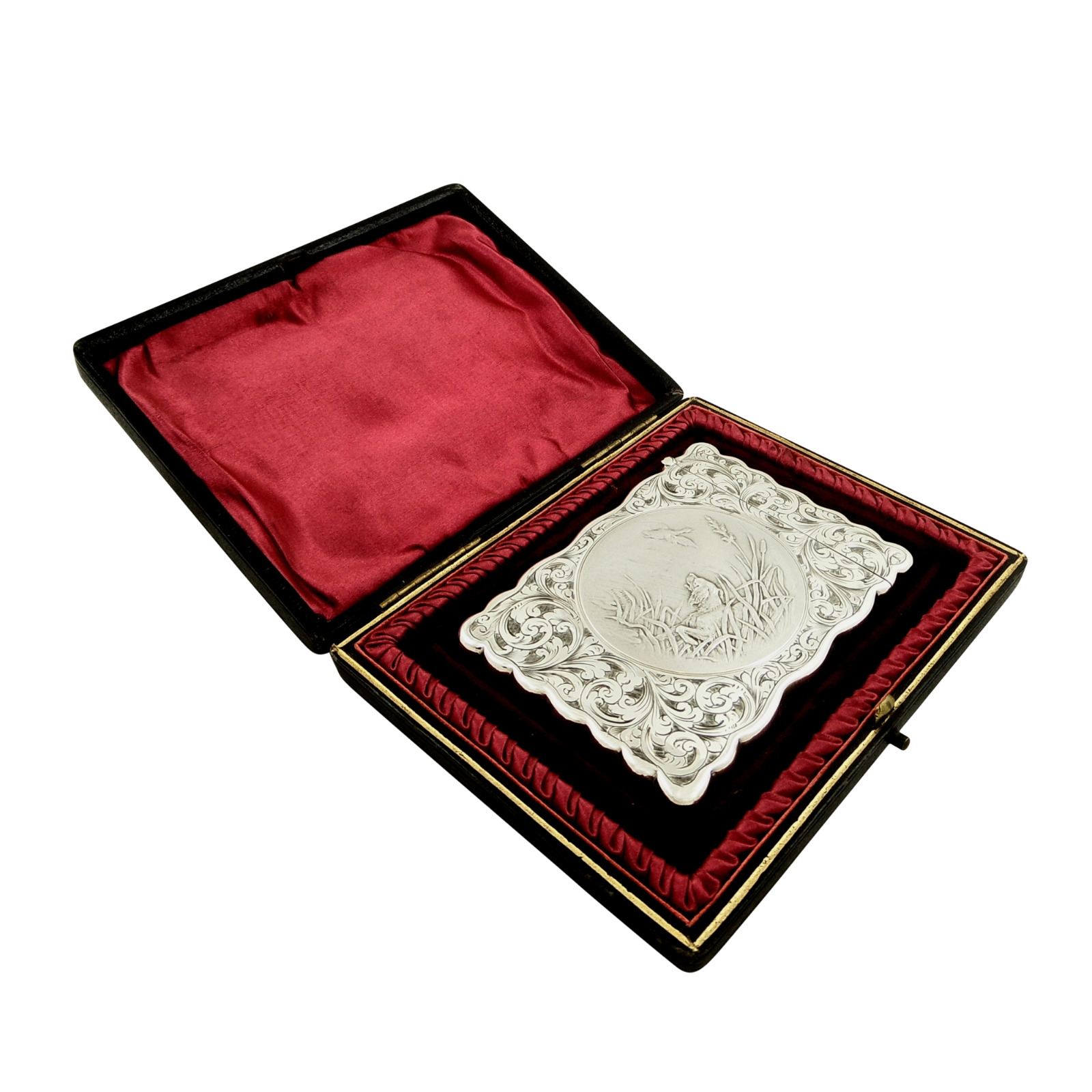 Antique Edwardian Sterling Silver Card Case - Dog & Bird 1905