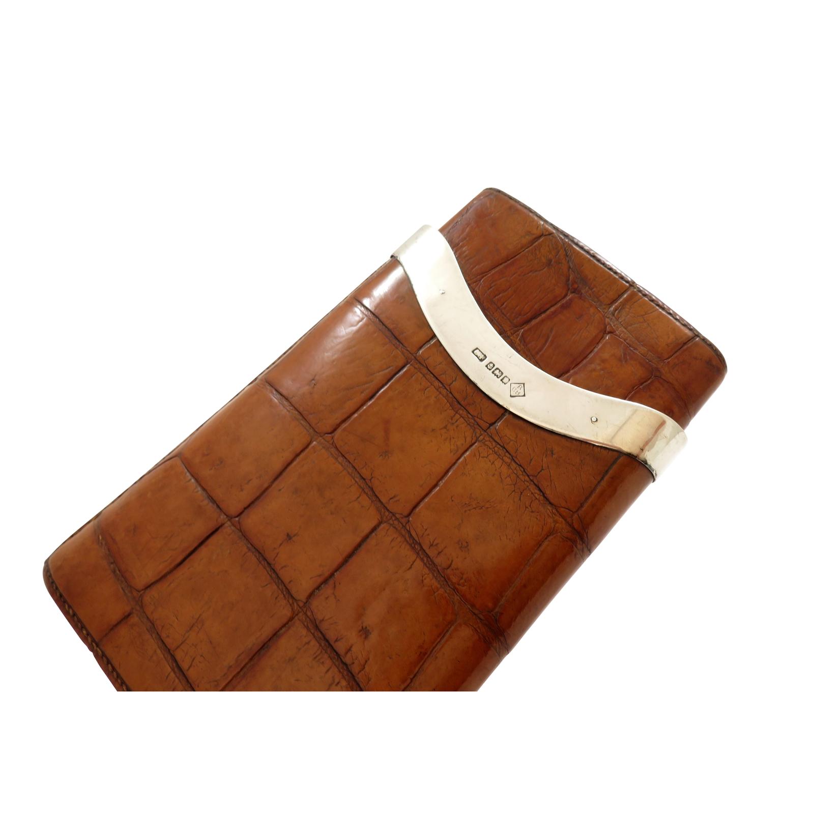 Antique Edwardian Sterling Silver & Crocodile Leather Cigar Case 1905