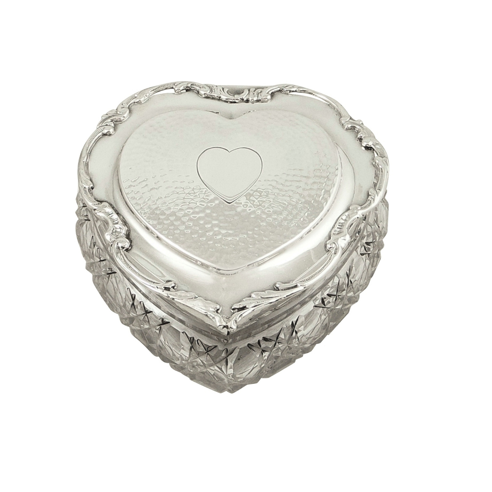 Antique Edwardian Sterling Silver & Cut Glass Heart Shape Trinket Box 1906