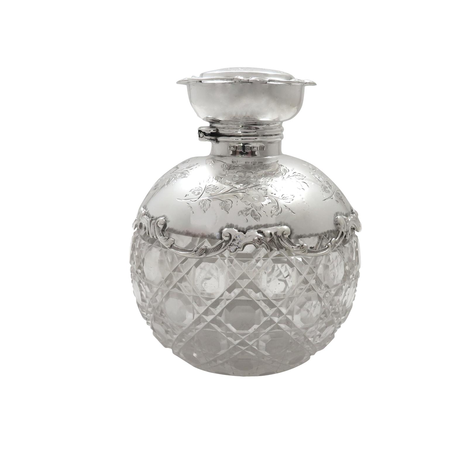Antique Edwardian Sterling Silver & Cut Glass Perfume / Scent Bottle 1909