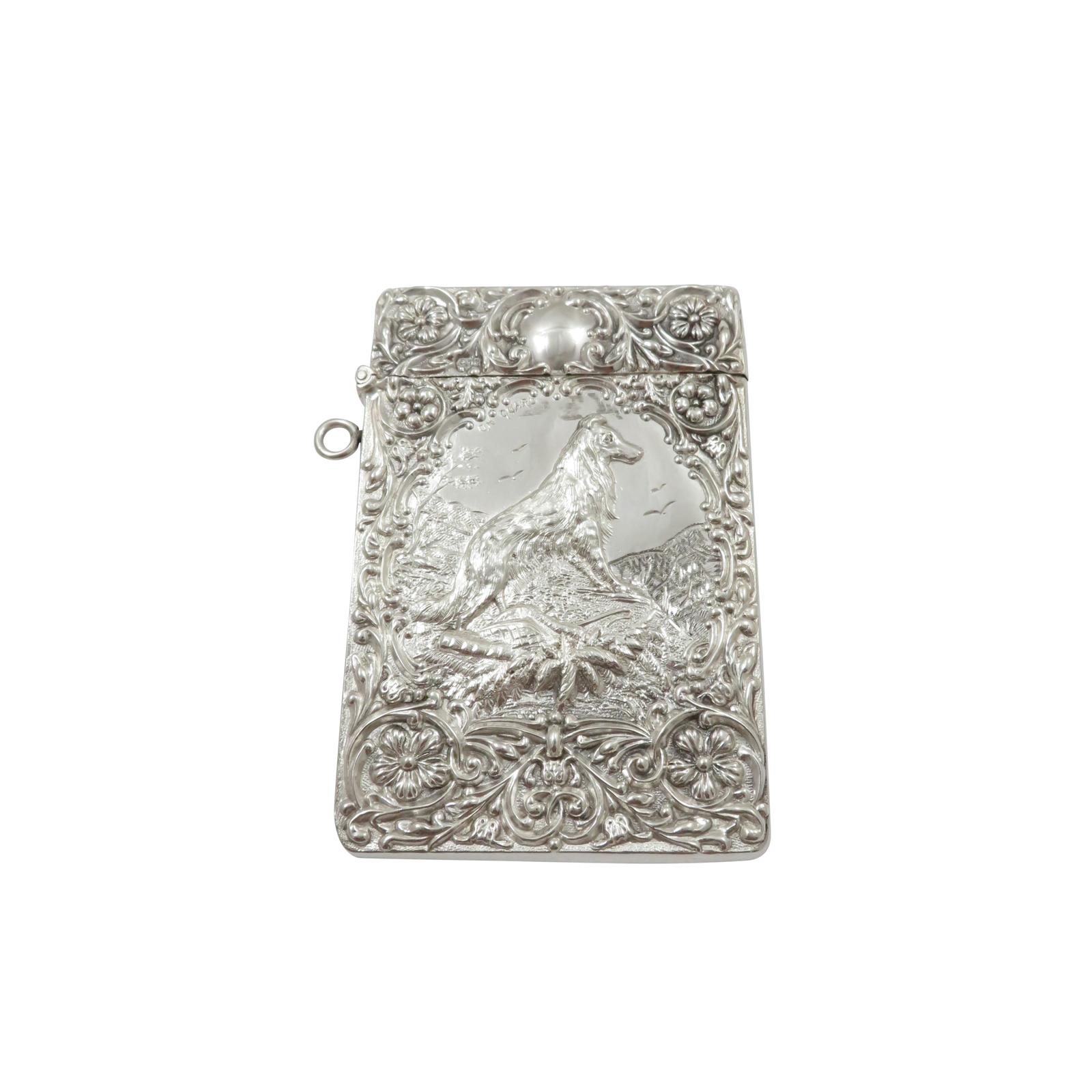 Antique Edwardian Sterling Silver 'Dog, On Guard' Card Case 1903