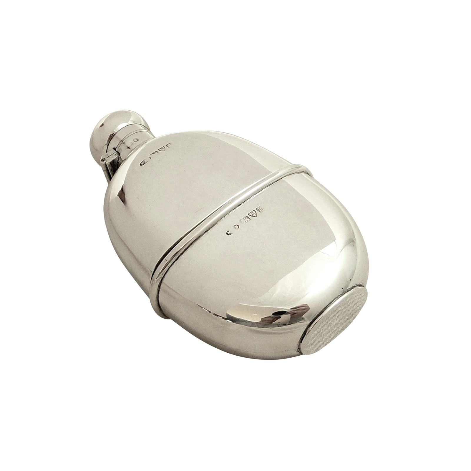 Antique Edwardian Sterling Silver Hip Flask with Cup 1905