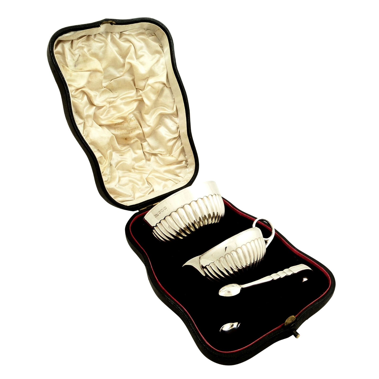 Antique Edwardian Sterling Silver Jug, Bowl & Tongs in Case - 1904