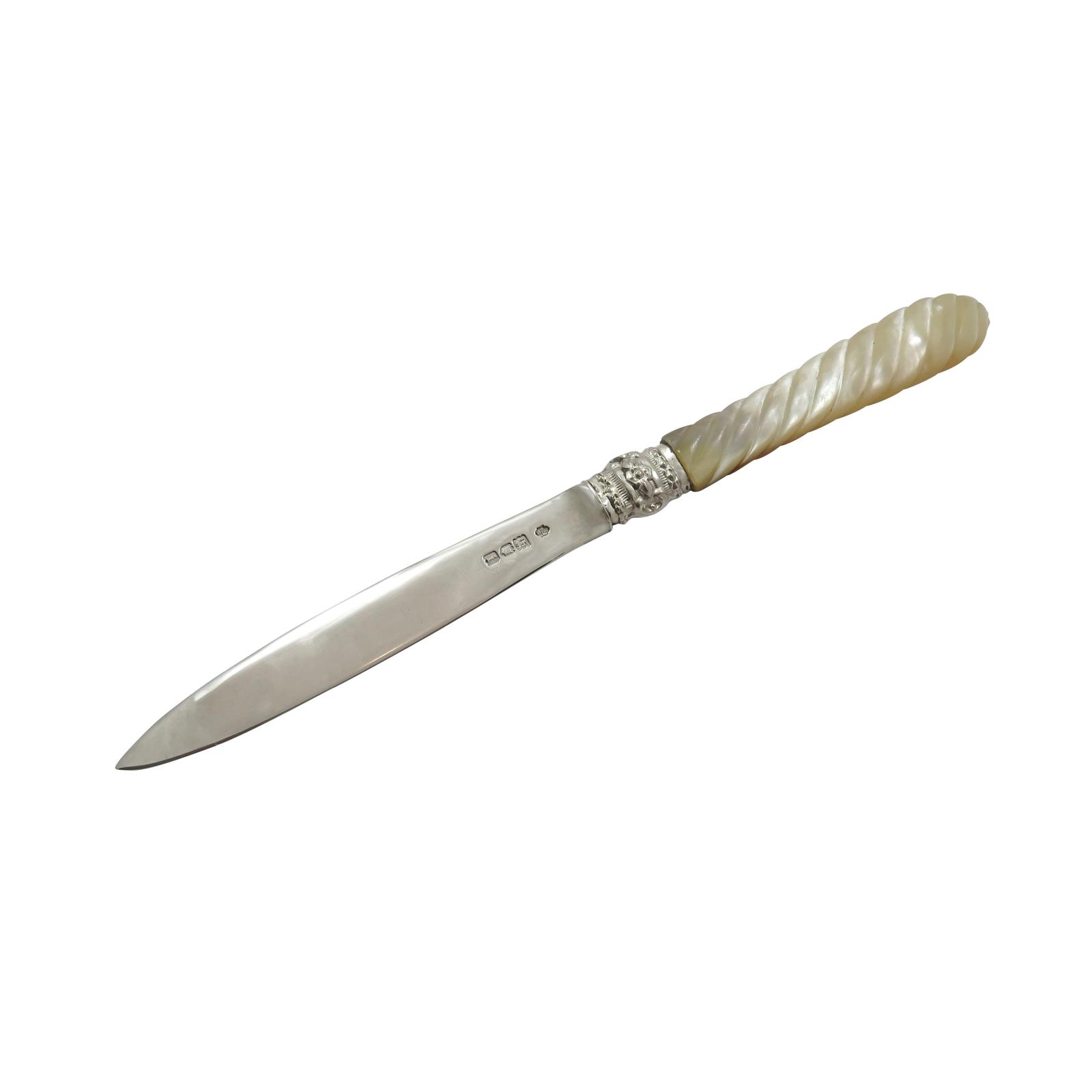 Antique Edwardian Sterling Silver & Mother of Pearl Letter Knife 1904