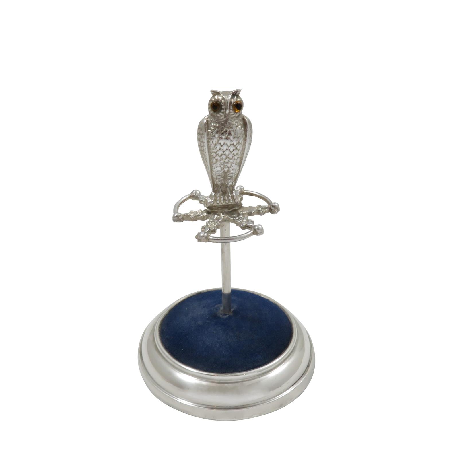 Antique Edwardian Sterling Silver Owl Hat Pin Cushion Stand 1908