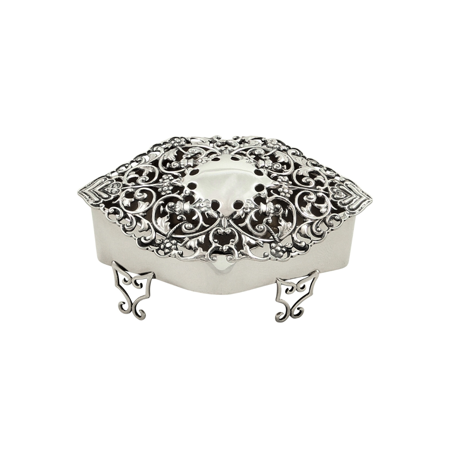 Antique Edwardian Sterling Silver Pierced Trinket Box 1904
