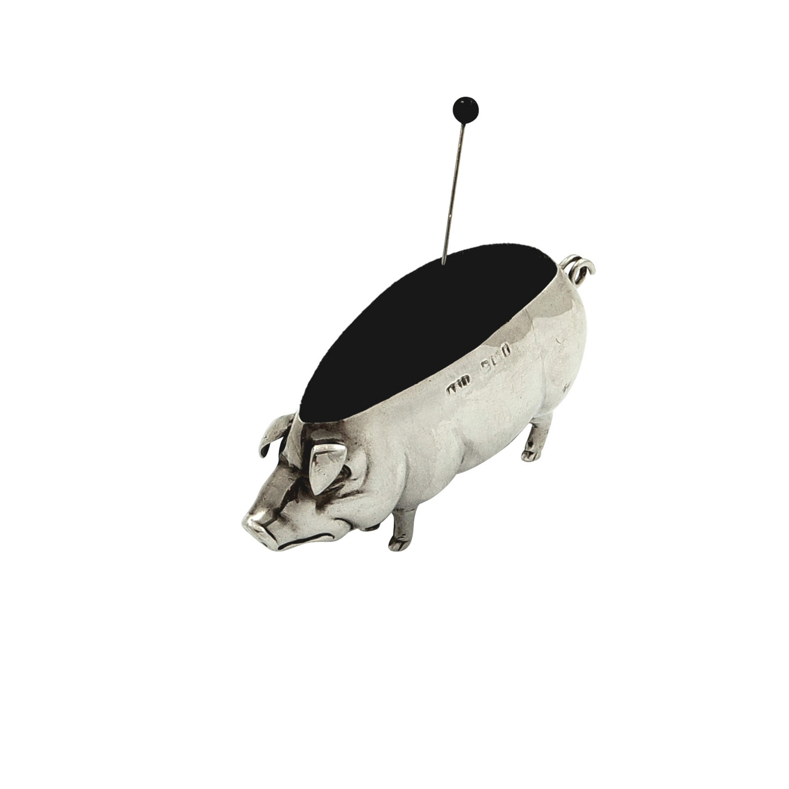 Antique Edwardian Sterling Silver Pig Pin Cushion 1908