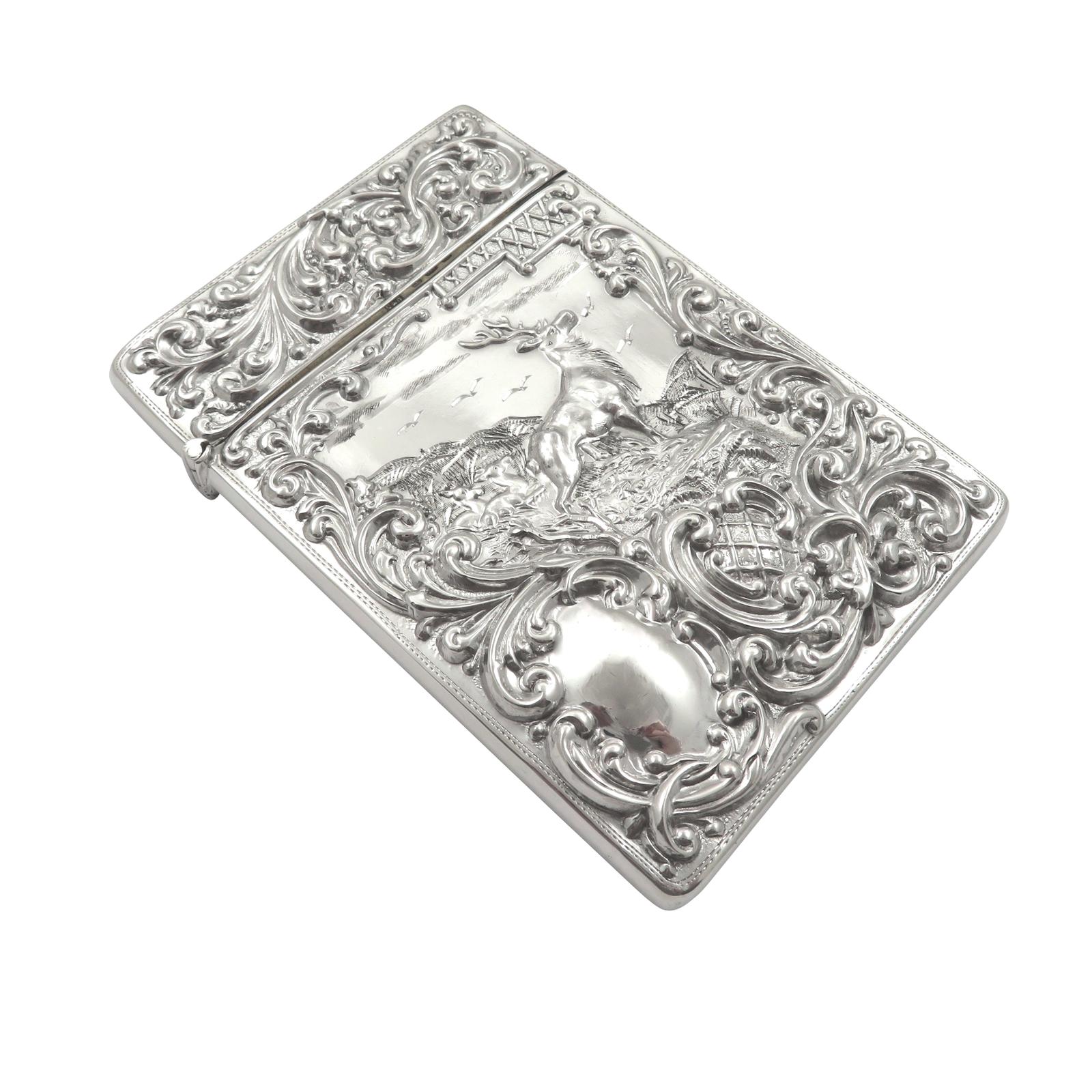 Antique Edwardian Sterling Silver 'Stag' Card Case 1910