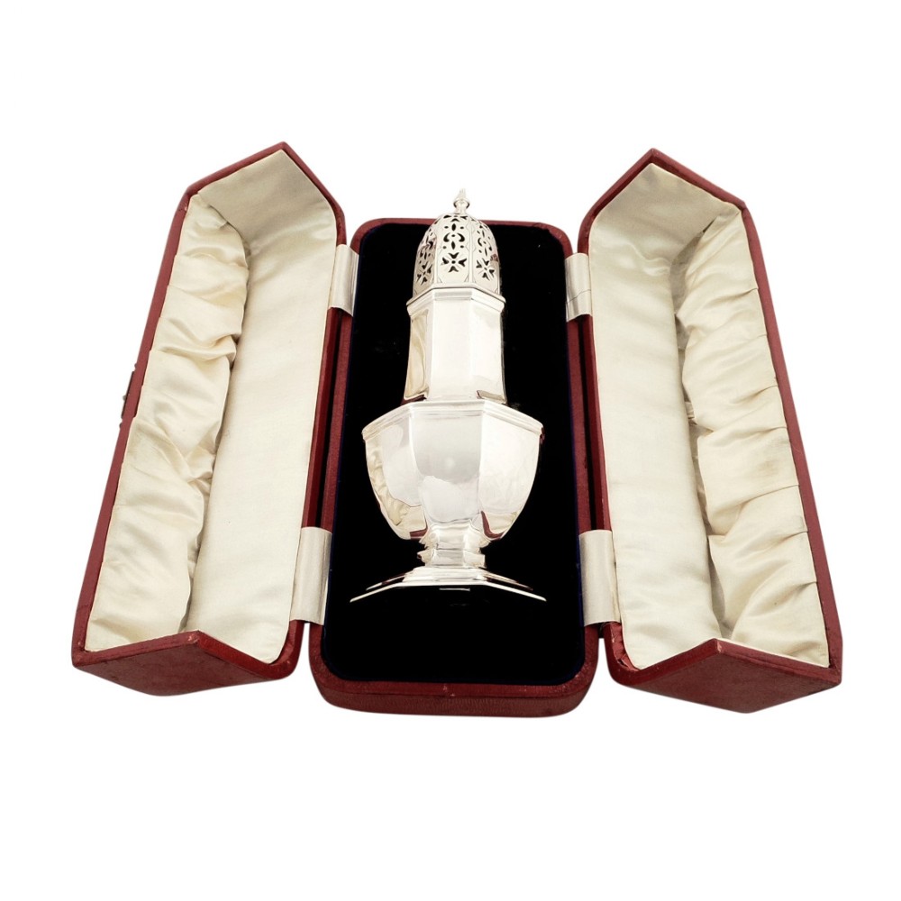 Antique Edwardian Sterling Silver Sugar Shaker / Caster in Presentation Case