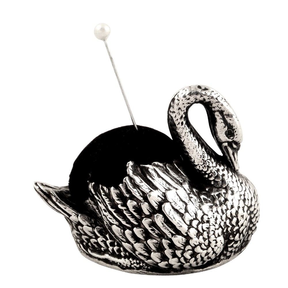 Antique Edwardian Sterling Silver Swan Pin Cushion 1901