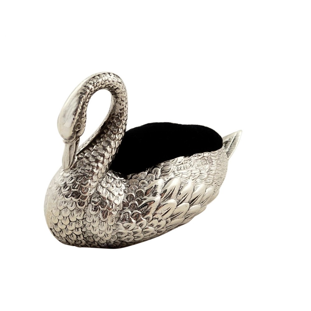 Antique Edwardian Sterling Silver Swan Pin Cushion 1906