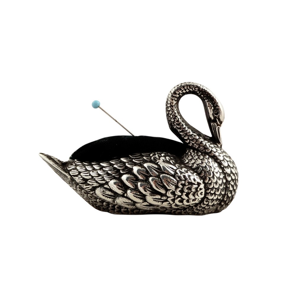 Antique Edwardian Sterling Silver Swan Pin Cushion 1906