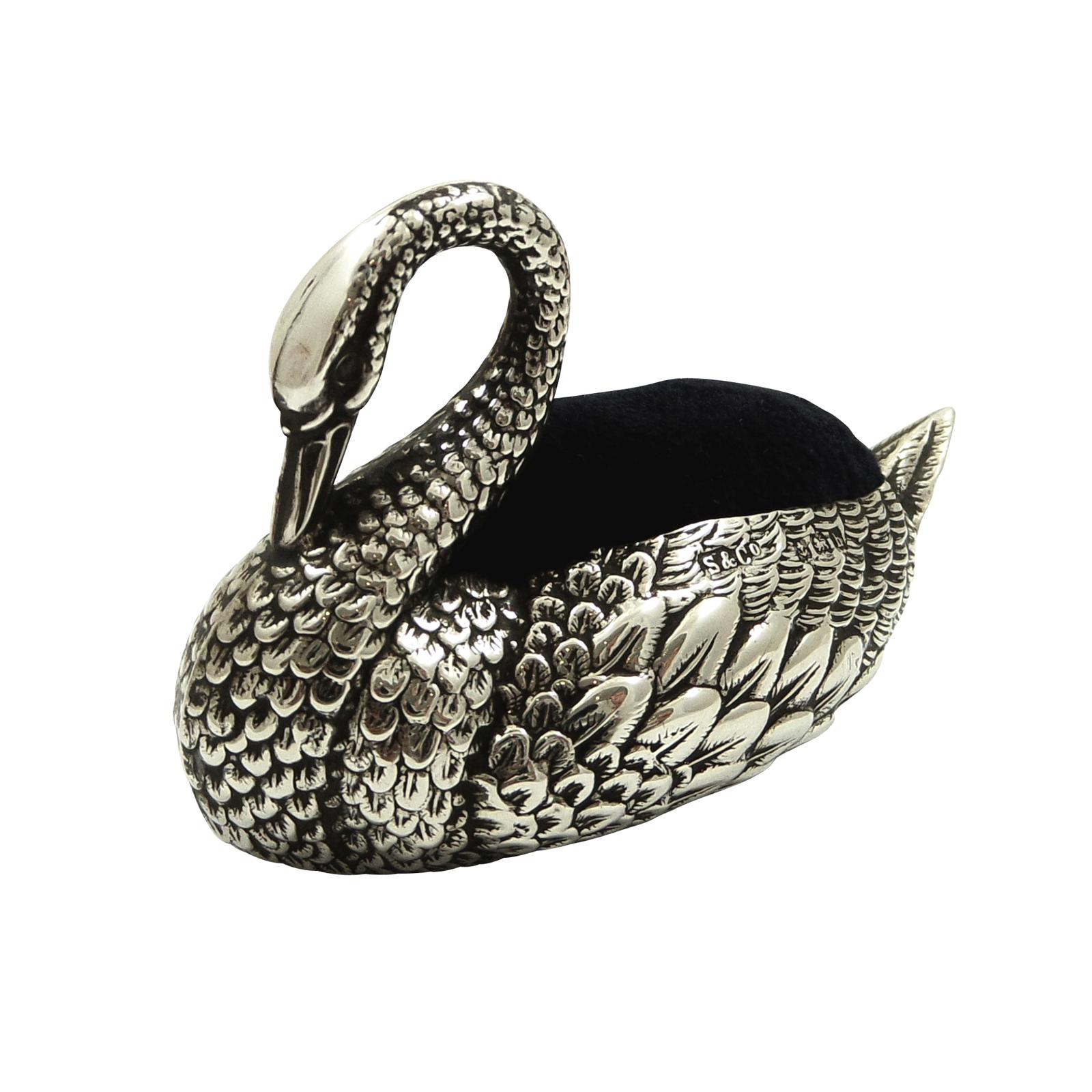 Antique Edwardian Sterling Silver Swan Pin Cushion 1907