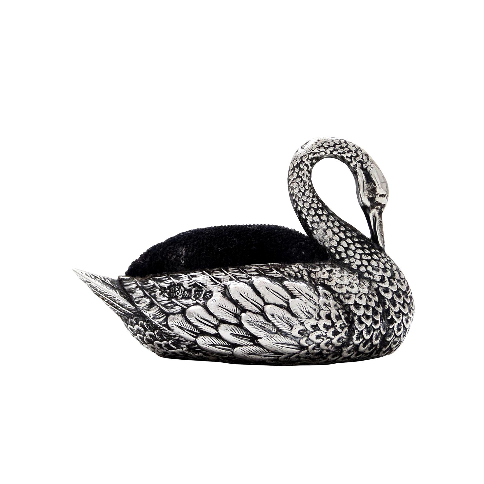 Antique Edwardian Sterling Silver Swan Pin Cushion 1908