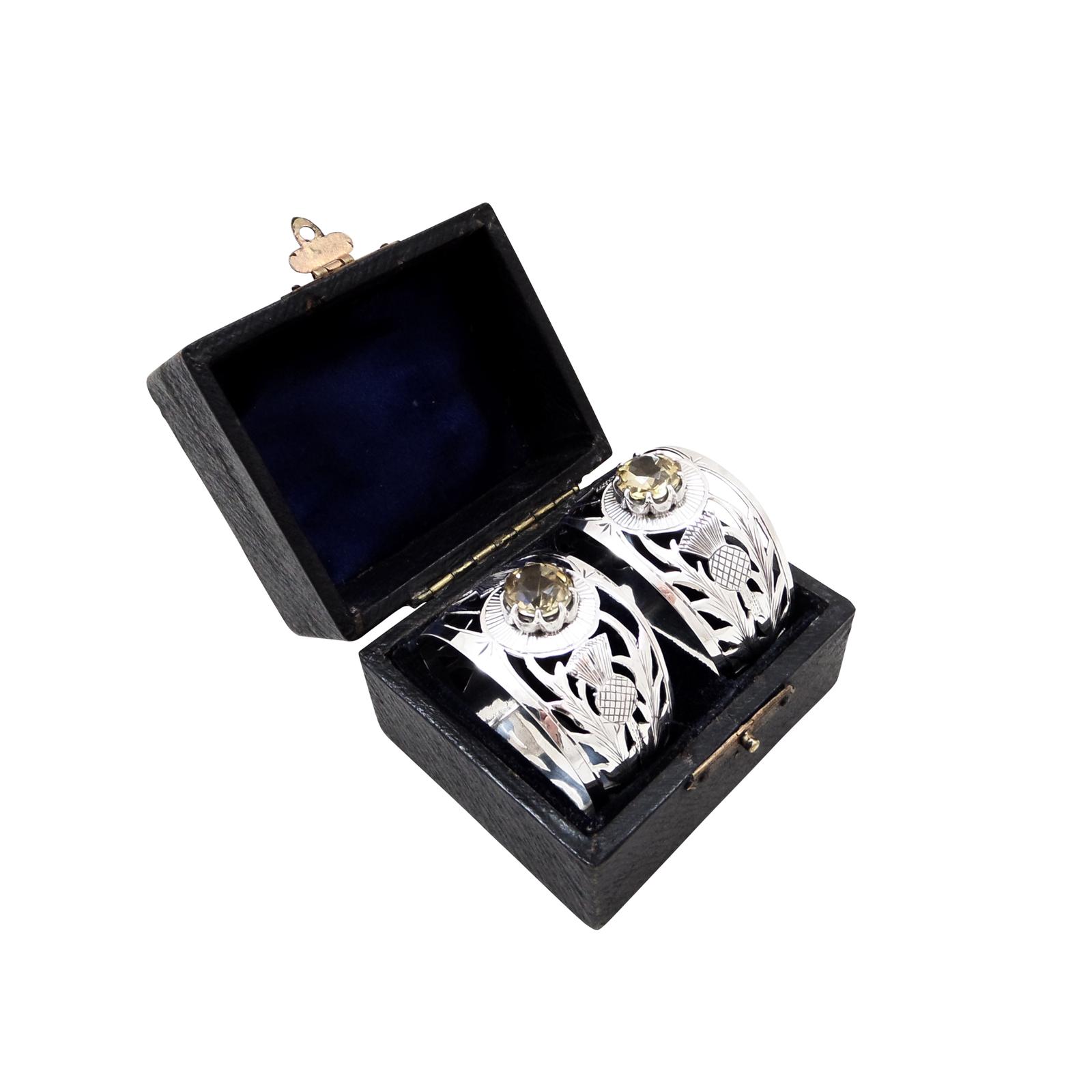 Antique Edwardian Sterling Silver 'Thistle' Napkin Rings in Case 1907