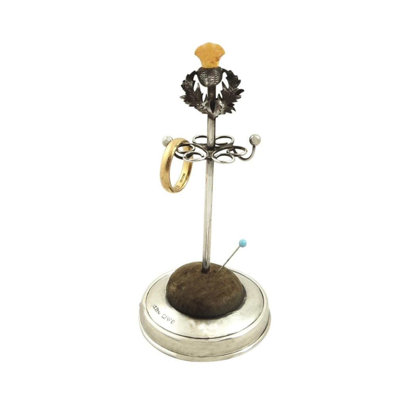 Antique Edwardian Sterling Silver Thistle Ring Tree / Pin Cushion 1910