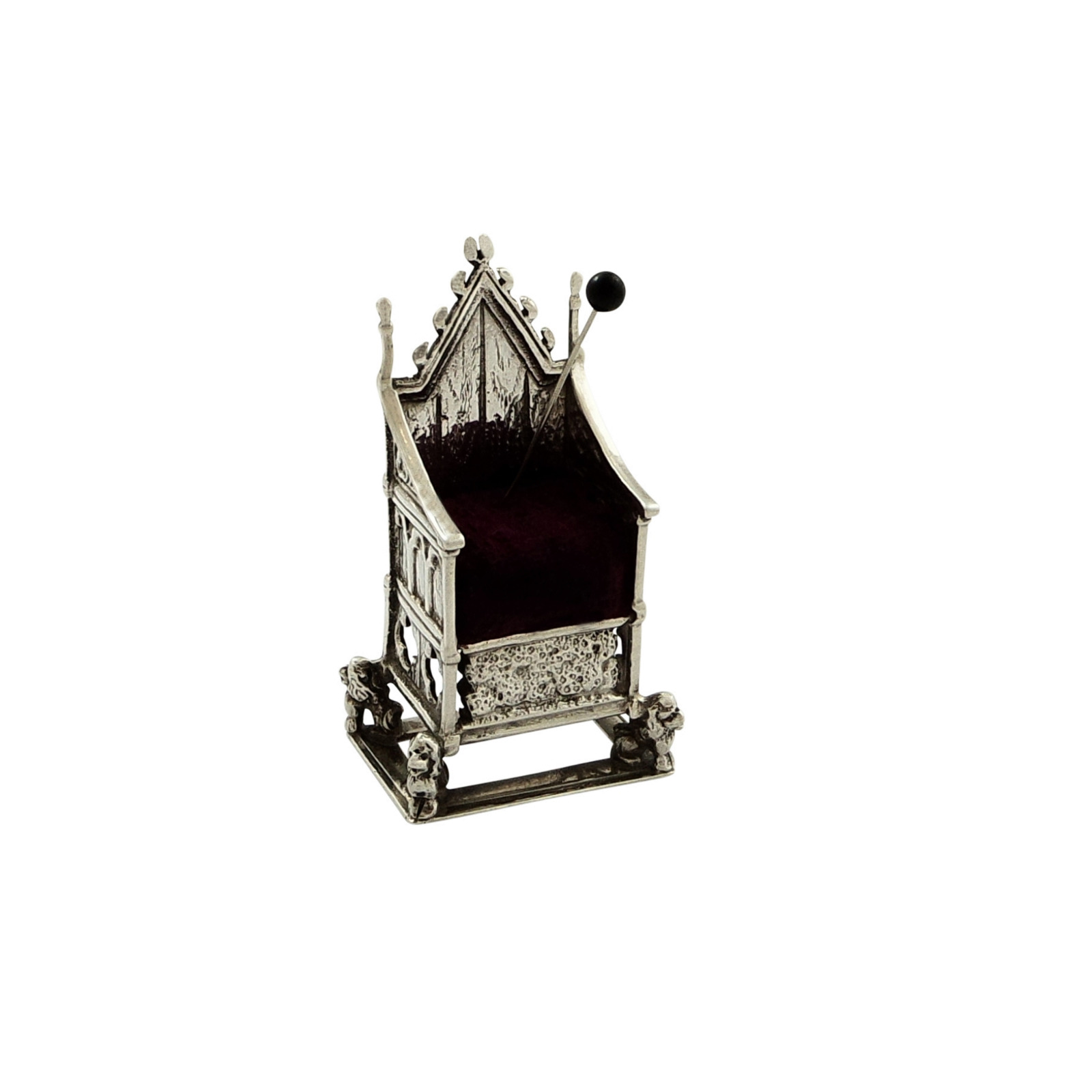Antique Edwardian Sterling Silver Throne / Coronation Chair Pin Cushion 1901