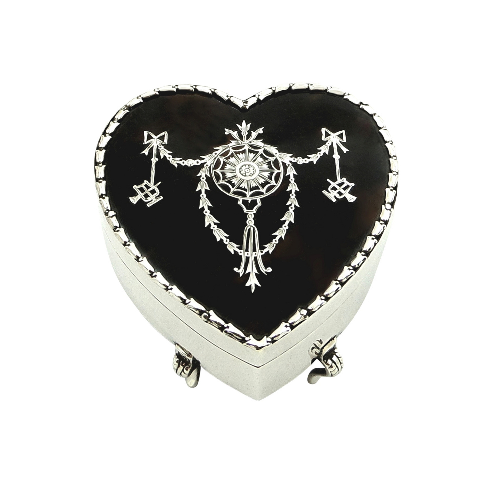 Antique Edwardian Sterling Silver & Tortoiseshell Heart Trinket Box 1907
